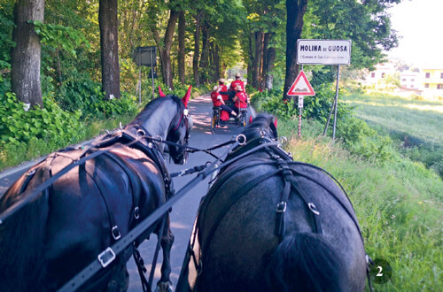 Carrettiere, portava di tutto con i suoi cavalli e i suoi carri, la merce più ambita era il marmo di Carrara, che riportava a Prato lungo la strada che abbiamo percorso noi, coadiuvato dal nipote Alessandro, che dopo anni vicino al nonno si può dire che ha una grande mano alle redini lunghe! E che dire degli accompagnatori essenziali, quando il tour significa giornate intere da vivere in carrozza: Simona esperta in toelettatura delle criniere, Michaela, badante dei driver e fotografa ufficiale del tour, Cristina, responsabile della Associazione Pangea, a capo dei ragazzi che abbiamo portato con noi nel viaggio, Paolino, maniscalco e intrattenitore delle sere e delle mattine con serenate e sonate al pianoforte dell’hotel.