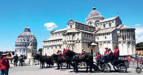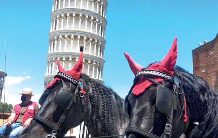 A Montecatini, a sera, davanti al Palazzo comunale, il Sindaco Baroncini e il dott. Marzullo di Snaitech e ci hanno augurato un buon riposo per la notte, offerta da Snaitech all’Ippodromo cittadino. Un ringraziamento va anche all’Associazione Il Cavallo e l’Uomo nelle persone di Alessandro Bracali e Pierantonio Rossi, che hanno organizzato per noi le soste nei Comuni di Montecatini e Lucca. Da non dimenticare l’accoglienza del Comune di Altopascio con il Presidente del Consiglio Comunale Sensi e la rinfrescante sosta davanti alle terme di San Giuliano del mezzogiorno di domenica. Nella bella Pisa, con la sua torre e la meravigliosa Piazza dei Miracoli, il Capo della Polizia Locale ci ha dato la possibilità di farci delle foto che resteranno per sempre nella nostra Scuderia.