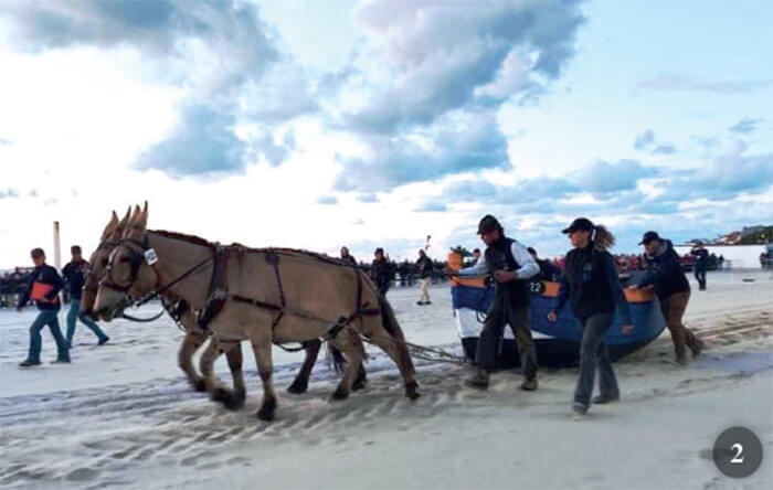 Alla partenza della Route du Poisson, che è una gara a squadre, il pesce pescato viene caricato da ogni squadra su una sorta di grande autocarro con cassone ribaltabile chiamato tide balloon, attaccato ai cavalli, che fanno la loro prima tappa (tra i 10 e i 17 chilometri circa) il più rapidamente possibile. Arrivati al punto del cambio, i cavalli stanchi vengono sostituiti da cavalli freschi, che ripartono immediatamente. Il carro percorre l’intera tratta in 24 ore e il carico viene scaricato solo a Parigi. Quest’anno alla Route du Poisson hanno partecipato in totale 256 cavalli