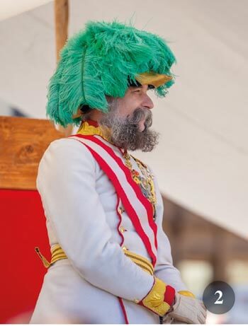 All’orario previsto delle 18:00, ci è stato chiesto di essere puntuali, per l’arrivo dello “Zar Alessandro”, accompagnato da un saluto cerimoniale a colpi di cannone da parte delle Guardie dell’Arcivescovo. Gli ospiti hanno poi visitato la nuova mostra dedicata alle Guardie nella Torre del Mulino del Castello. Al ritorno al Castello, siamo stati accolti con un ricevimento a base di champagne e un discorso inaugurale di Milan, seguito dalla cena nella grande sala dei banchetti. Dopo cinque portate di deliziose specialità locali, eccoci nel Salone principale per assistere a uno spettacolo di ballerini di polka e di bambini.