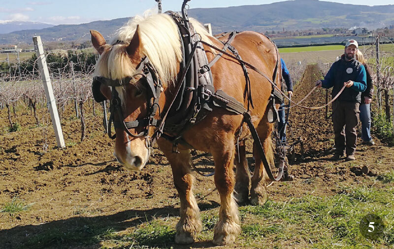 Il passo del cavallo, a differenza del trattore, dà vita al terreno, non ne distrugge gli organismi e i microrganismi presenti. E un terreno sano dona frutti sani, con una minore dispersione di risorse e, di conseguenza, di tempi e costi.