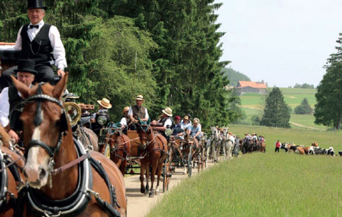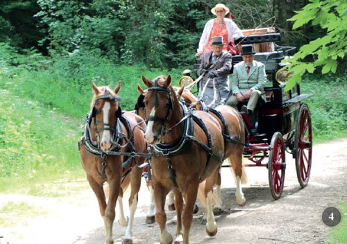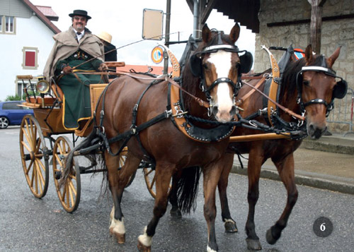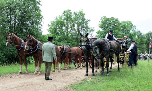 Paesani e vacanzieri si sono ritrovati nel bel mezzo del secolo scorso, un vero salto nel tempo, vedendo sfilare, attaccati in perfetto ordine, Klapp Break, Landau, un piccola Postale del 1913 attaccato a 4 rari Franches-Montagnes grigi e, ancora, alcune Dottorine. Sulle vetture guidatore e passeggeri erano vestiti di tutto punto in abiti d’epoca o in costume regionale. Ed è anche nella tradizione che uno sparo dia il via ai cavalli per tuffarsi nei circa 25 chilometri di avventura. Bravi anche i valorosi stallieri e groom che molto spesso dovevano correre davanti ai cavalli per aprire i famosi “clédards”, pesanti cancelli che separano i vari pascoli. È stata anche l’occasione per vedere come i guidatori sapevano gestire situazioni piuttosto inconsuete, quando mandrie di mucche o fattrici, in totale libertà, correvano incuriosite verso le carrozze!