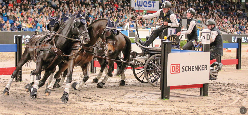 L’australiano ha ottenuto i tempi più veloci in ogni round, terminando l’ultima gara del sabato con quasi 7 secondi di vantaggio sul secondo classificato Ijsbrand Chardon. Boyd Exell si è dimostrato in gran forma, senza dubbio in una delle situazioni migliori della sua lunga carriera e la domanda è: può essere battuto in questa stagione? La terza uscita in tre fine settimana consecutivi del circuito più famoso al mondo riservato ai tiri a quattro, ha offerto un “Super sabato” all’Hanns-Martin-Schleyer Halle di Stoccarda: in testa, in entrambi i giorni, l’australiano Exell.