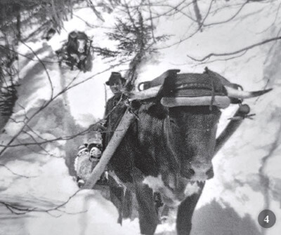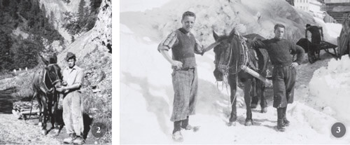 Trasporto concime con le slitte. Sauris di Sopra, Marzo 1946 (foto a destra)