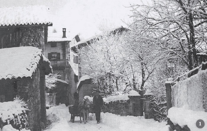 Nel tarvisano era usanza nelle famiglie di contadini di adoperare le mucche per tirare le slitte perché garantivano anche latte e formaggi e davano un reddito regolare, erano più facili da gestire per le donne, su cui spesso pesavano i lavori agricoli, dato che gli uomini andavano “a fare la stagione” in Austria.. Dopo gli anni ‘60, i contadini iniziarono ad adoperare anche i cavalli. Sempre nel tarvisano nella miniera di Raibl, dove si estraeva piombo, i muli erano impegnati all’interno delle gallerie a tirare carrelli Il mulo trasportava dietro di se 5 carelli che vuoti pesavano 750 kg ed andavano a contenere fino a 600 litri di materiale. Il trasporto con neve in inverno fuori dalla miniera veniva garantito da muli che tiravano slitte. Preziosi ricordi di slitte, immagini di fatiche da conservare nel cuore di chi le ha vissute e nella mente delle nuove generazioni.