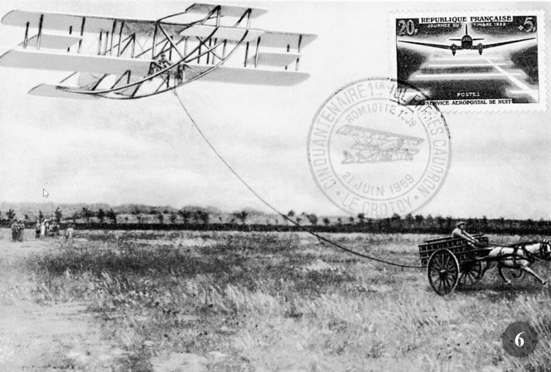 - Annullo filatelico in memoria della generosa giumenta Lucille, nell’atto di far decollare al trotto spedito il piccolo aeroplano dei fratelli Caudron.