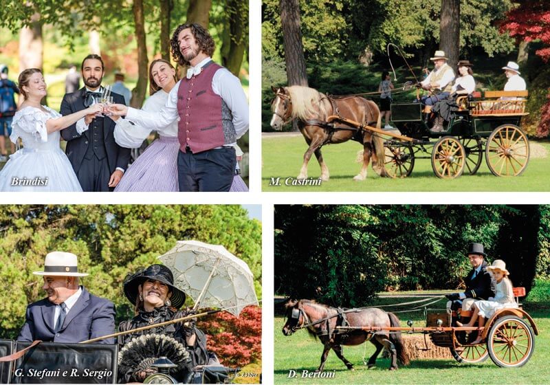 Che dire dei cavalli, i motori di quel bel tempo andato: dai piccolissimi pony, agli ubbidienti Haflinger, ai neri frisoni, agli eleganti lipizzani, che hanno affascinato i visitatori. Insomma, cavalli lucidi, cocchieri in eleganti livree con immancabili cilindri, sfiziosi cappellini per le dame, balli d’epoca, hanno dato vita a un meraviglioso viaggio nel tempo, che ha saputo affascinare chiunque si trovasse a passeggiare lungo i viali.