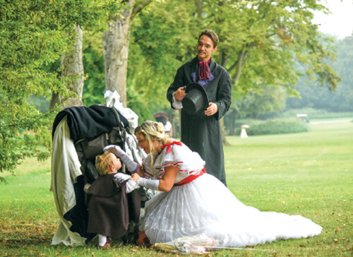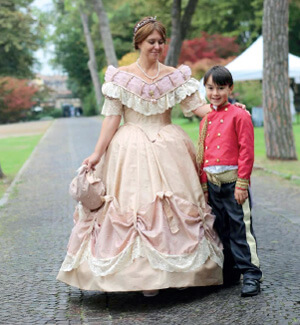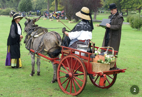 Il Viaggio nel tempo tanto atteso al Parco Giardino Sigurtà a Valeggio sul Mincio, quest’anno, ha dovuto fare i conti con una giornata di pioggia. Già dal primo mattino, dame in costume e impettiti gentiluomini passeggiavano nel parco, bicicli sfrecciavano per i vialetti, mentre sostava ordinato un gruppo di visitatori pronti a salire in carrozza per l‘emozionate passeggiata, affidata ad un cocchiere d’eccezione, Giuseppe Usai, in perfetta livrea. Ma il cielo comincia a farsi nuvoloso suggerendo, prudentemente, di munirsi di ombrello. Intanto, fuori dal Parco, attorno alle carrozze, storiche protagoniste della giornata, erano indaffaratissimi i cocchieri e i groom a sistemare e attaccare i cavalli, nonché a lucidare gli ottoni.