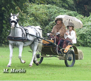 Tornando al Concorso, seguono due attacchi singoli con pony. Alle redini del primo la giovanissima Melissa Morbis accompagnata da una simpatica ragazzina, entrambe con un copricapo sbarazzino. Melissa guida un veloce due ruote da passeggio di produzione recente. A presentarsi al Giudice è poi una deliziosa Dottorina dalla capote aperta, prodotta agli inizi del 900 a Castions (UD) dalla carrozzeria G. Micoli Toscano e condotta da Antonio Mottin, con una elegante signorina a fianco. Claudio Ongaro è a passeggio con un amico su Military in legno naturale degli inizi del 900, attaccato a un cavallo: viene molto apprezzato dal Giudice che lo premierà col primo posto in classifica fra i Singoli, seguito sul podio dall’esordiente Sara Mozzo con Spider di Macchi (VA) accompagnata in carrozza dall’orgogliosissimo papà.