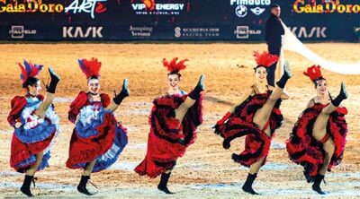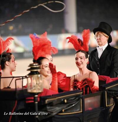La colonna delle carrozze è in campo ordinatamente disposta, con cavalli impeccabili, groom attenti e cocchieri in livrea: le ballerine del Galà d’Oro cominciano le danze.