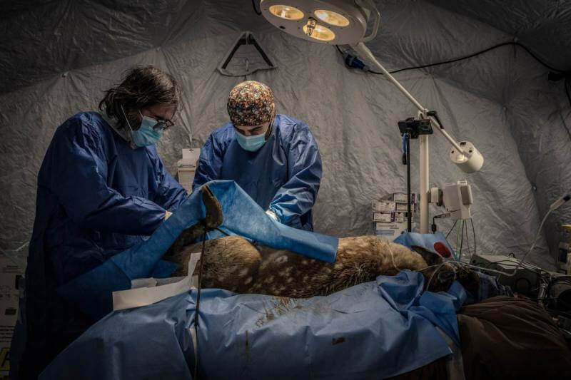 Grazie alla disponibilità del CANC (Centro Animali Non Convenzionali) dell’Università di Torino, dal 11 al 13 febbraio, otto degli animali fuggiti dal recinto sono stati catturati da una squadra di specialisti abilitati all’uso del fucile per telenarcosi e quindi sterilizzati con un operazione chirurgica in laparoscopia. L’intervento è stato effettuato nella sala chirurgica allestita nella tenda dell’Unità di Emergenza LAV.