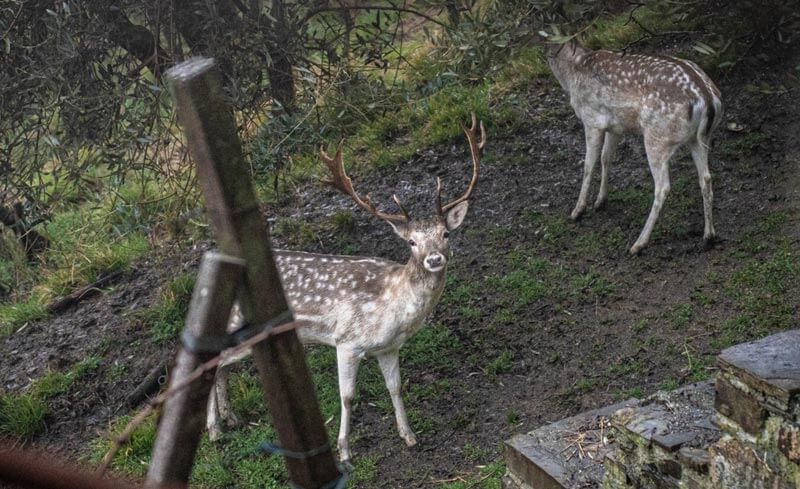 Daini e Cervi costretti a vita in un recinto per il piacere del loro proprietario.