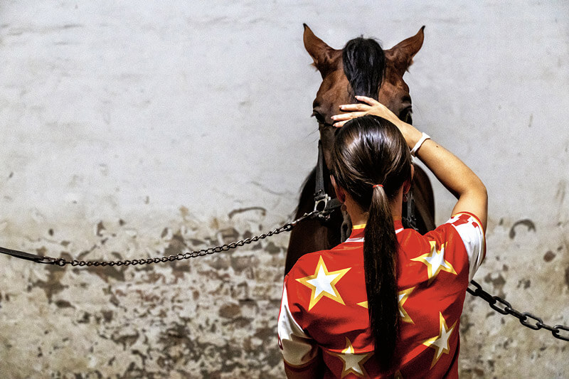 In questa narrazione per fotografie sono protagonisti la vita delle scuderie ed i suoi sentimenti; è la parte più intima ed umana dell’ippica, quella che HippoGroup ha chiesto di interpretare liberamente all’artista visivo Andrea Bernabini. La carezza tra l’uomo e il cavallo è espressione di un rapporto dalla durata millenaria, è il segno che rappresenta anche il mondo agricolo e rurale da cui provengono i puledri che, arrivati all’età adeguata, debuttano e si esprimono sulle piste degli ippodromi. L’allevatoria è il primo tassello di una filiera di grande importanza, che esporta campioni in tutto il mondo e di cui, soprattutto la nostra Regione, deve andare particolarmente fiera (Il leggendario Varenne è nato in provincia di Ferrara).