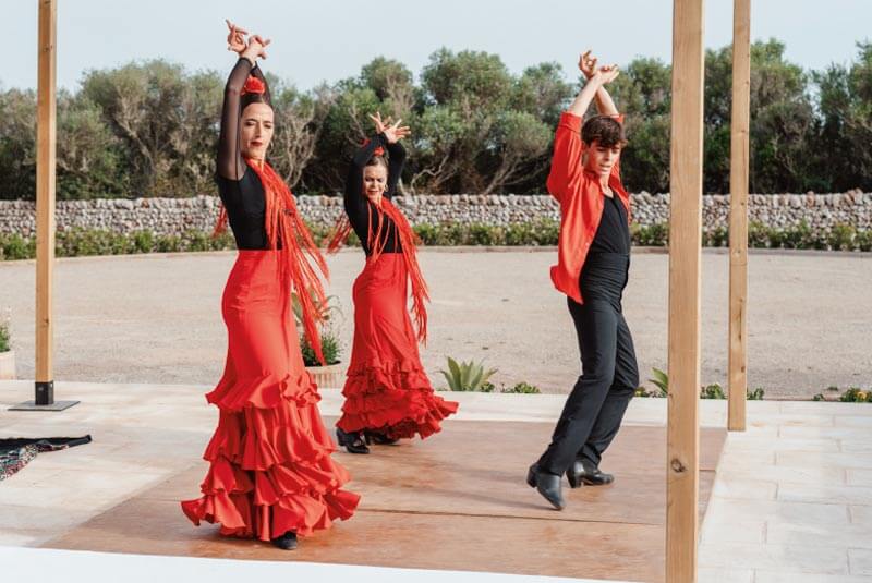 È in un meraviglioso parco con fiori, alberi secolari e splendidi animali che Fabio Berrini, insieme alla moglie Santina, ha avuto il piacere di accogliere e salutare tutti gli invitati alla festa. Ad aprire le danze, due bailaoras (ballerine) e un bailaor (ballerino) di famenco, che si sono esibiti su un grande palco all’aperto ai magini di una arena pronta a ospitare i tanto attesi cavalli di Pura Razza Minorchina. Il flamenco è arte, energia e sentimento: questo ballo ricco di passione, tipico della tradizione spagnola ha sedotto tutti i presenti introducendoli all’atmosfera magica ed emozionante della grande “fiesta” per gli ottant’anni di Chifa. A seguire la “Banda Municipal de Ciutadella”, uno dei migliori gruppi musicali bandistici dell’isola, ha intrattenuo gli ospiti con un repertorio vario. Uno dei momenti più significativi dell’evento è stato il Jaleo con i cavalli di razza minorchina di Sant Climent, località in cui si trova la Finca Sta Barbara. Il Jaleo è una festa tradizionale di Minorca, risalente all’epoca medioevale, uno spettacolo equestre ricco di sentimento e tradizione che non poteva assolutamente mancare alle celebrazioni per gli ottant’anni di Chifa.