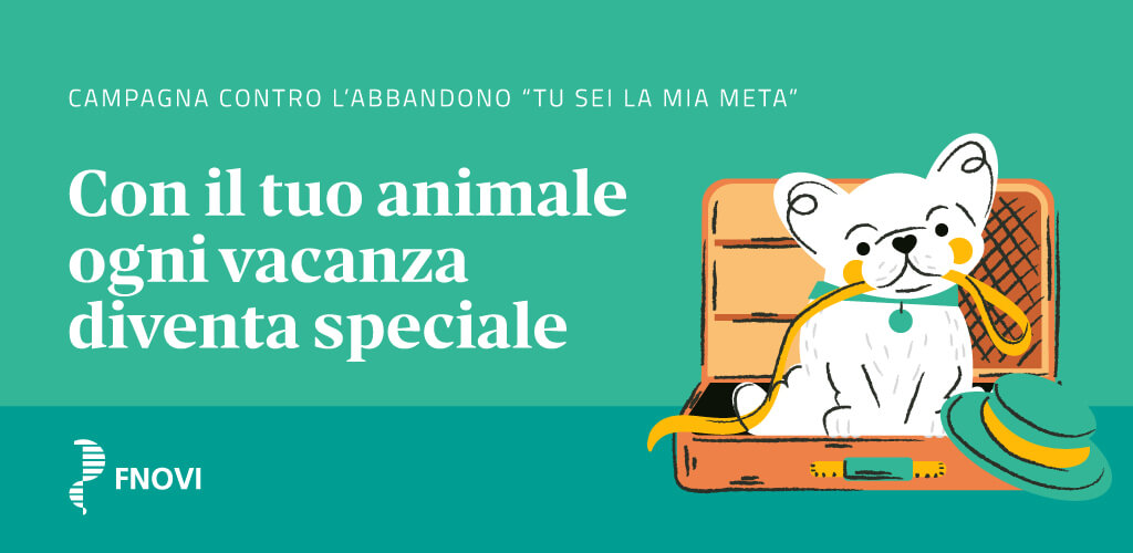 La Federazione invita tutti i medici veterinari a sostenere attivamente la campagna “Tu Sei La Meta”,contribuendo a diffondere il messaggio contro l’abbandono, condividendo il carosello social e pubblicando una foto con il proprio animale da compagnia in vacanza, l’hashtag #TuSeiLaMiaMeta, taggando i profili social di FNOVI.