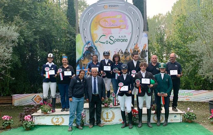 Il nostro Team, guidato da Elisabetta Moranzoni, era composto da da Elisa Mendichi (Scuderia della Capinera) in sella a Godo Van Het Puttenhof, Viola Franzin (CIL Milano) e Hollypark Neptune, Laura Carrelli Palombi (Golden Grove) con Que Belle M e Giuditta Cingolani (Golden Grove) in sella Treboy. La medaglia d’Oro di squadra è il risultato dei miglior 3 punteggi della categorie 1, 2 e cat. 1 stella con coefficiente mentre la classifica individuale è ottenuta dal miglior punteggio nelle cat 1, cat 2 e 1 stella con coefficiente e vede in prima posizione Giuditta Cingolani (Golden Grove), che si è messa al collo la medaglia d’Oro, precedendo Elisa Mendichi (Scuderia della Capinera), compagna di Team, che ha vinto l’Argento.