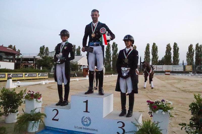 La medaglia d’argento è andata, invece, al collo di Nausicaa Maroni (CE Il Cavallino; Lombardia). Dopo aver vinto il titolo tecnico ieri, l’amazzone lombarda in sella a Embajador Sg ha concluso il suo Freestyle con il 71,810, punteggio valido appunto per il secondo gradino del podio. Il terzo posto e la conseguente medaglia di bronzo è di un binomio tutto italiano: quello composto da Pierluigi Sangiorgi (Scuderia Sangiorgi; Emilia Romagna) e Gelo delle Schiave che hanno fatto registrare una percentuale del 68,640.