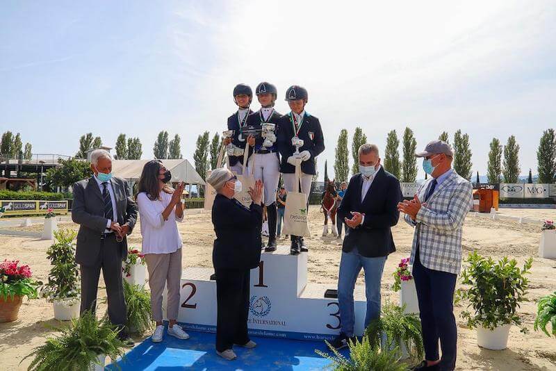 Ludovica Camerlengo si è aggiudicata il Campionato italiano tecnico Pony. In sella a Chantre 31 l’amazzone tesserata per il C.E. di Mottalciata (Piemonte; istr. Marilia Vittone) ha concluso con 141,735. Argento per Mina Felicitas Simeone (Horse Le Lame Sporting Club; Umbria; istr. Asja Katharina Goetzke) in sella a Chica del Sol con 136,760. Medaglia di bronzo per Edoardo Zara (Scud. S.Giacomo; Piemonte; istr. Paola Lerma Zara) e FS Coco Jambo con 135,095.