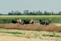 Dopo circa tre quarti d’ora di percorso, quasi interamente al piccolo trotto, siamo arrivati per una breve pausa in una località con tre splendidi laghetti, dove qualche pianta ha potuto garantire delle zone d’ombra molto ambite. Una piccola sosta per un aperitivo e si è, quindi, tornati al punto di partenza e cioè al piazzale dello stadio di Soresina certamente adatto, per l’ampio spazio e i suoi servizi, per organizzare un ritrovo di questo genere. Sistemati i cavalli e i finimenti si è, quindi, potuto pranzare all’esterno del bar attiguo, che gentilmente ha concesso l’uso dello spazio esterno con relativi tavoli. Un bel pranzo alla “canadese” dove ognuno porta qualcosina e si possono scambiare esperienze di gusto diverse.