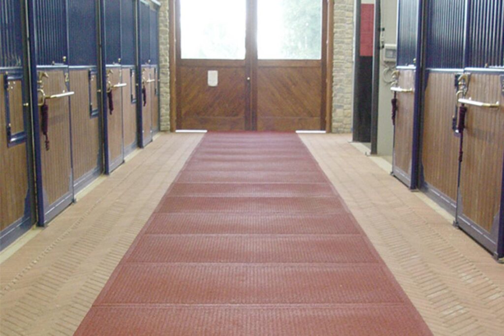 Piastre Ecohorse, di grandi dimensioni, ad alta resistenza, antiscivolo, ammortizzanti, prodotto scelto anche per questa edizione dall’Ente Fiera, garantiscono un elevato comfort e benessere al cavallo nelle diverse zone di permanenza e transito.