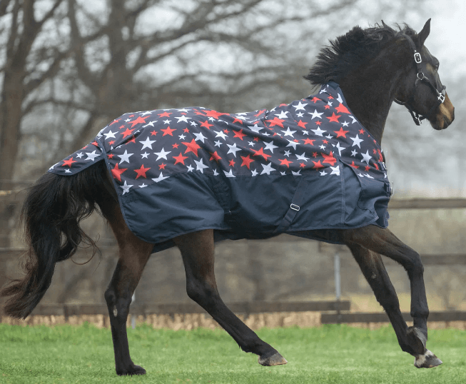 Finalmente una coperta con stelle rosse, bianche e blu ma dal taglio anatomico, ideale per tutti i cavalli!
