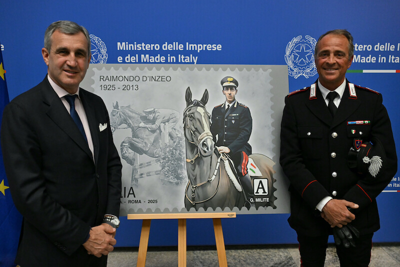 Il Ministero delle Imprese e del Made in Italy ha emesso un francobollo ordinario appartenente alla serie tematica “I Valori sociali” dedicato al Generale di Divisione dell’Arma dei Carabinieri e campione olimpico di salto ostacoli Raimondo d’Inzeo, nel centenario della sua nascita.