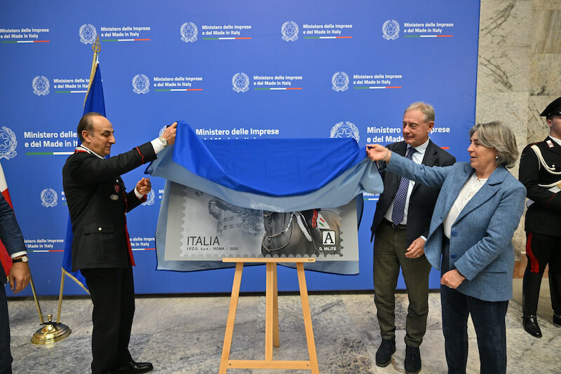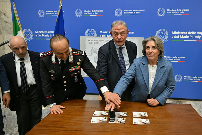 Alla cerimonia di presentazione e annullo filatelico, che si è tenuta nel Salone degli Arazzi di Palazzo Piacentini a Roma, svoltasi martedì 18 marzo, hanno partecipato tra gli altri il ministro delle Imprese e del Made in Italy, sen. Adolfo Urso, il Comandante generale dell’Arma dei Carabinieri, Salvatore Luongo, il Presidente della Federazione Italiana Sport Equestri, Marco Di Paola, la famiglia d’Inzeo rappresentata dai figli di Raimondo: Susanna e Guido, i rappresentanti di Poste Italiane e dell’Istituto Poligrafico eZecca dello Stato.