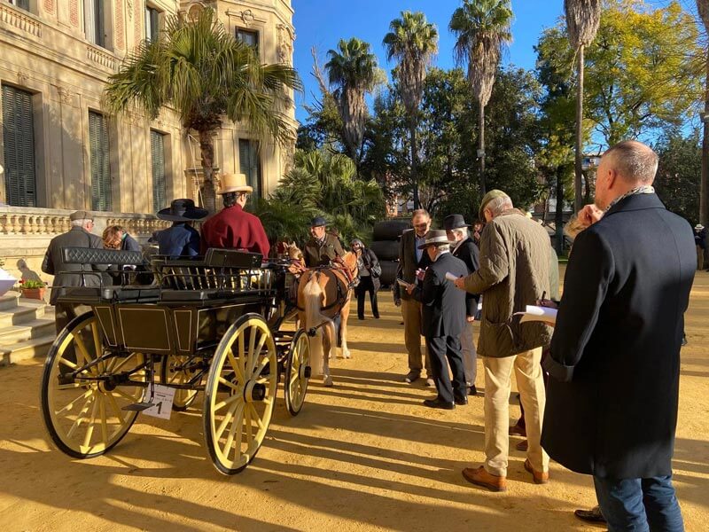 Il sabato mattina, durante il Clinic, i Giudici, suddivisi in tre gruppi, erano chiamati a giudicare oltre 30 attacchi presso la Real Escuela de Arte Equestre de Andalusia: un test molto impegnativo che ha visto, una dopo l’altra, presentarsi carrozze originali con attacco singolo e pariglia, con attacchi a tre e attacchi multipli imponenti nell’ampio giardino di fonte all’ingresso del Palazzo. Questi stessi attacchi partecipavano al CIAT di Jerez organizzato in occasione di questo evento internazionale.