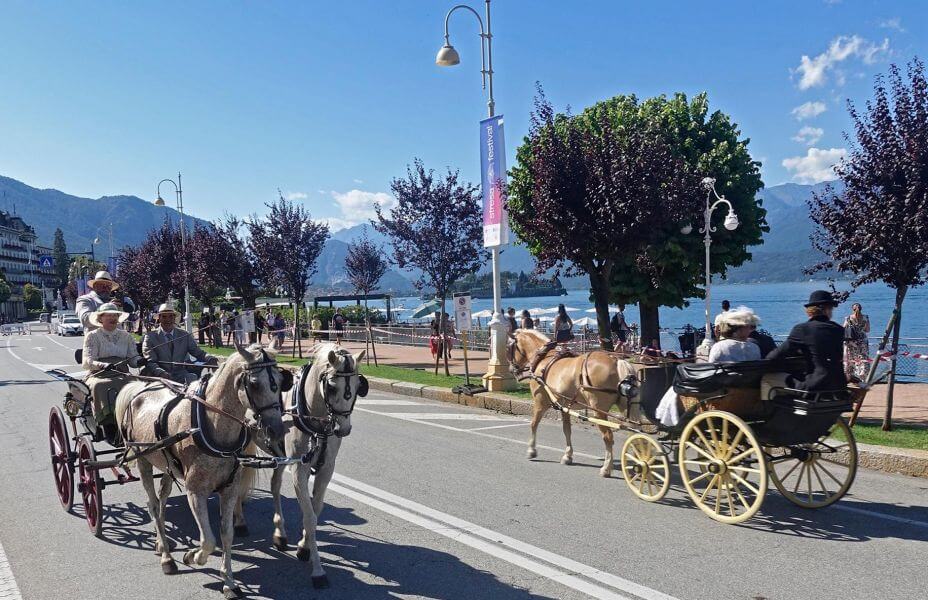 La strada antistante l’hotel, chiusa al traffico e opportunamente presidiata , costituira’ il palcoscenico dove si muoveranno cavalli ed equipaggi sotto gli occhi di visitatori e abitanti di questa cittadina, perla del Lago Maggiore.