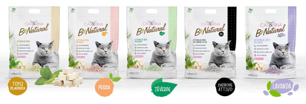 Cat&Rina BeNatural, lettiera per gatti al tofu agglomerante di origine vegetale, naturale e biodegradabile.