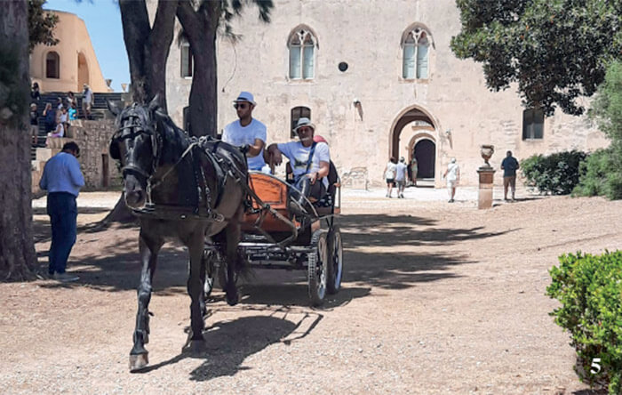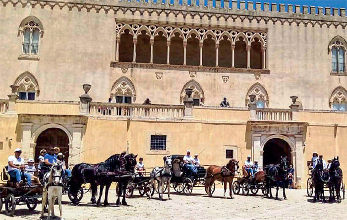 Ma il 2 giugno è anche la Festa della Repubblica, che ha trovato un momento davvero toccante allorquando nella corte del castello, sullo schieramento semicircolare delle carrozze, è risuonato l’inno di Mameli alla presenza delle Autorità intervenute, tra i tanti turisti (molti stranieri), che non si aspettavano un incontro tanto ravvicinato con la cultura dei luoghi e la tradizione delle carrozze. La passeggiata resterà indelebile nella memoria di tutti i partecipanti, insieme al riverbero del nostro passato, intriso di storia e leggenda, di antiche tradizioni della Sicilia rurale che più non è. Un evento ben riuscito, ma soprattutto l’occasione per una giornata full-immersion nell’atmosfera della Sicilia più autentica, fondata sulla sacralità dell’ospite, che tanto affascina chi viene da lontano, quella sicilianità positiva che nei secoli è stata la vera forza motrice di questa incredibile isola.