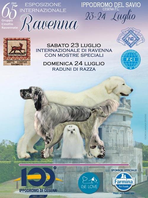 Sabato 23 luglio la serata al Savio è dedicata al 65° IDS – International Dog Show di Ravenna, l’esposizione collocata per il secondo anno all’esterno del suo ambito territoriale (l’ente organizzatore infatti è il Gruppo Cinofilo Ravennate), è stata riconfermata all’ippodromo di Cesena anche in virtù dell’importanza di questo particolare anno, segnato dalle celebrazioni del suo centenario. La serata di corse quindi, riporta le denominazioni delle realtà che hanno permesso la realizzazione di questo importante evento, che rafforza la vicinanza tra i due mondi, quello equestre e quello cinofilo.