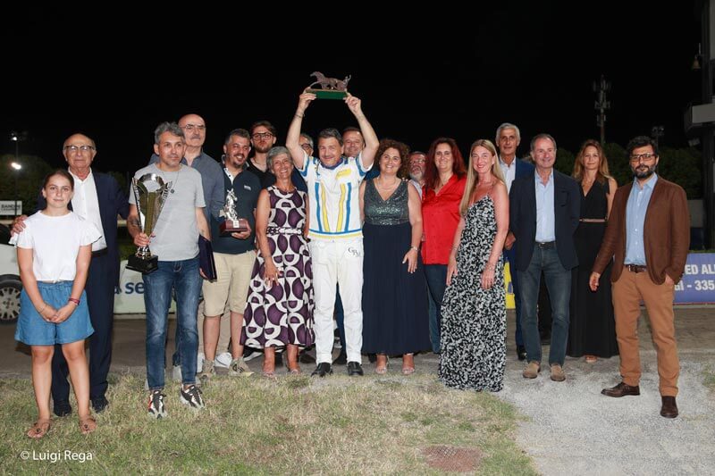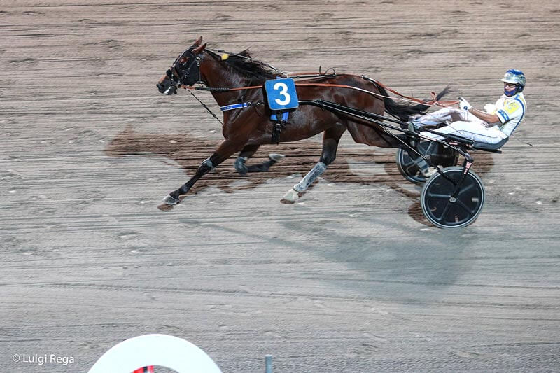 Il prologo serale offriva la prima chance pubblica ai puledri di due anni, con sei esordienti in gara ed un plebiscitario favorito in Face to Face promessa di Lorenzo Baldi che però ha fortemente deluso i suoi sostenitori cedendo a traguardo lontano dopo aver condotto sin dal via, ha vinto con merito Fuga dal Bar, allieva di Filippo Rocca affidata a Santo Mollo che in 1.18.3 ha rintuzzato il perentorio finale di Freeway Bi mentre al terzo posto è giunto uno stanco Face To Face. Tutto facile per Matteo Zaccherini ed il teutonico Heck M Eck, anziano dai natali austriaci che il bavarese Robert Gramuller ha affidato in eccellenti condizioni al gentlemen felsineo onorando il pronostico con un brillante percorso di testa chiuso in 1.14.3 su Billy Pan e Tancredi Sartor. Tre anni sul doppio chilometro e con partenza ai nastri, gli errori irrimediabili per Esmeralda Gar in partenza ed Ecuador Cr quando era al comando, hanno spianato la strada all’appoggiato Encantador che ha vinto brillantemente nella mani di Roberto Vecchione nonostante i reiterati attacchi di Etabeta Spritz, partita con circospezione ma assai agguerrita lungo il percorso e seconda all’epilogo davanti a Esplosivo Gso, media di 1.16.1 per l’allievo di Holger Ehlert, il trainer di Gelsenkirchen e il driver campano hanno poi ripetuto l’exploit alla quarta grazie al percorso all’avanguardia del loro Drake vincitore in 1.13.7 su Darwih Wise L e Dom Perignon, ancora una squalifica per Antonio di Nardo questa volta alle redini di Demon Dell’Est, assai seguito al totalizzatore. Arrivo a fruste alzate alla quinta corsa, uno degli eventi dal maggior tasso tecnico della serata con tre cavalli su di una linea ed il fotofinish a sancire il successo in 1.13.6 di Corsaro San e Carmine Piscuoglio su Verdon Wf, autore di sprint autorevole quanto tardivo, mentre Valente Fb ha completato il podio dopo aver condotto la gara e ceduto solo nelle fasi finali. Chiusura in rosa,con tre anni in pista sulla breve distanza e vittoria, brillante e mai in discussione per Estelle Matto e Carmine Piscuoglio, con la lady allenata da Michele Raimo a segno in 1.14.9 sull’incombente Eltyme, terza a qualche lunghezza la trascurata Eva Light.