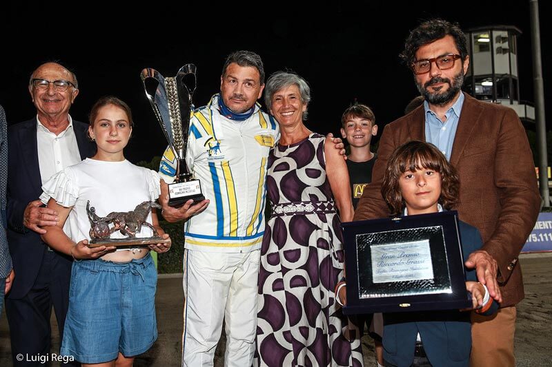 Nelle fotografie: Una premiazione affollata per il Gran Premio Riccardo Grassi: oltre al Presidente Massimo Antoniacci ed all’amministratore delegato di Hippogroup Riccardo Grassi, in pista anche i consiglieri del Consorzio Romagna Iniziative.
