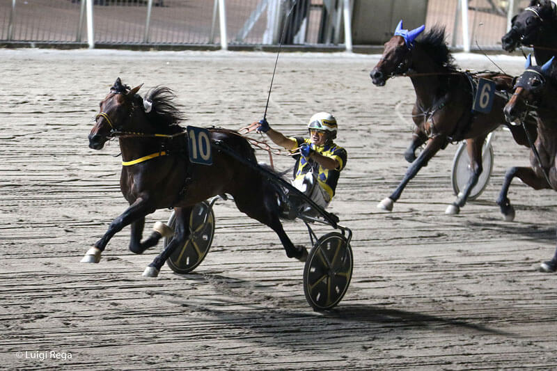 Rotture in sequenza alla seconda corsa con Andrea Vitagliano ed Elgatto Jet a segno dopo percorso di testa, primo successo in carriera per il portacolori di casa che in 1.16.3 si è lasciato alle spalle l’ospite Estasi Jet e l’atteso Epic Men, poco aiutato dalle evenienze tattiche. Alla terza partenza al fulmicotone per Eccembombo Jet, presto sostituito all’avanguardia dallo scatenato Einstein Grad, proiettato in avanti da Roberto Vecchione e netto vincitore al ragguaglio di 1.14.3, su Esmeralda Trio e Eleomeda Jet. Altra sfida di spessore, la quarta corsa, duemila i metri da percorrere per i 7 cadetti al via, con il successo a sorpresa per il carneade del gruppo, Darwih Wise L, guidato con sagacia e tempismo dal giovane Piscuoglio che ha colto in evidente crisi gli avversari spaziando in 1.15.4 sull’altrettanto sorprendente Denise Dorialmail, terza una deludente Dama di Prussia su Dante Zs e a tabellone il favorito Dominus Fas.