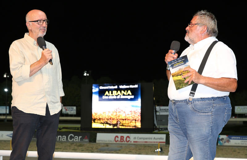 Nella serata di corse è stato presentato dal giornalista Paolo Morelli, per la rassegna “Autori in Pista”, il libro del sommelier Giovanni Solaroli scritto con Vitaliano Marchi: “Albana, una storia di Romagna”.