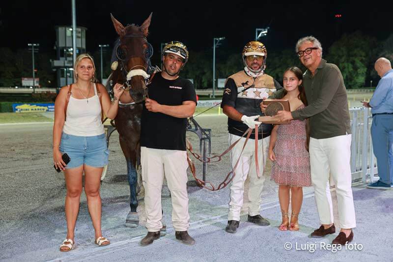Alla quarta “Premio Italian Recatracks in the World”, tris nazionale, match senza esclusione di colpi tra Don’t Give UP Lj, vincitore in 1.15.2 e America di Risaia, valorosa battistrada sino a pochi metri dal palo, con l’appostato Dionisio al terzo posto per l’en plein del primo nastro, e il marcatore completato da Cantico e Bellamente. Il tutto a generare una tris nazionale a quota 410,70 euro. Double in serata per Lorenzo Baldi grazie al successo, di Frida Gso alla quinta corsa, con la portacolori di Sonia Galanti preminente in 1.14.9 su Florence e Finalmente Dl, favorita al betting, ma deludente all’epilogo dopo aver condotto sin dalle prime battute. Alla sesta riscatto per Manuel Pistone dopo le deludenti performance di Finalmente Dl e Cantico grazie all’eccellente prestazione del suo Errante dominatore della contesa in un significativo 1.12.6 davanti a Eloy Jo Francis ed Evita Peron, a tabellone causa errore al via la favorita Emergenza Par. In chiusura vittorioso assunto per Elena e Francesco Virzì in un dozzinale 1.18.3 su Eiolo e Edin Dei Daltri, velleitario attaccante lungo i duemila metri di gara.