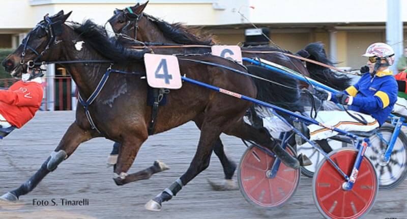 Alla settima, altro percorso all’avanguardia concluso vittoriosamente da parte di Elegante Dann che in 1.13.4 ha rintuzzato il pressing di Elegance Bi a sua volta preminente nei confronti di Estalba Pax. Chiusura nel segno degli specialisti dello schema ad handicap, che nella tqq di giornata hanno visto prevalere Maurizio Cheli con Elton Francis sui compagni di nastro Cimbro Gas e Elettra D’or, mentre Dutyfree Bi, unico tra i penalizzati nel marcatore, ha chiuso al quarto posto su Delise Tc, media di 1.16.4 e quote popolari per tris, poco oltre i 48 euro e quartè a 138, nessun vincitore, invece per la scommessa quintè.