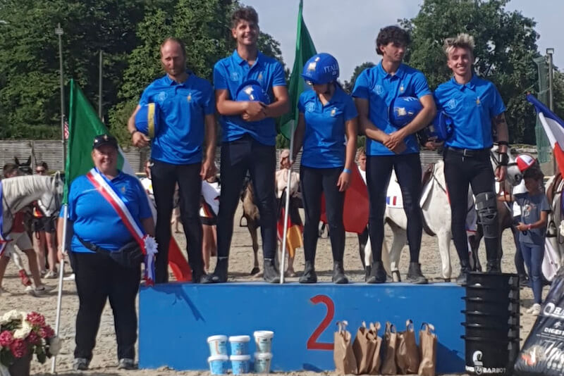 A conquistare l’argento è stata la formazione Open guidata da Giorgia Bertassello e composta da Lorenzo Savini su Peppy Jeais, Lorenzo Lazzeri su Cymboliek, Federico Pacini su Marcella, Luca Russo su Duchessa e Maria Rosaria Gargiulo su Flicka. Il team azzurro ha chiuso la finalissima con un totale di 127punti. Sul primo gradino del podio è salita la rappresentativa di casa, la Francia con 146 punti. Terzo posto per la Germania che aveva chiuso la finalissima con lo stesso punteggio dell’Italia, ma lo spareggio ha dato ragione agli azzurri.