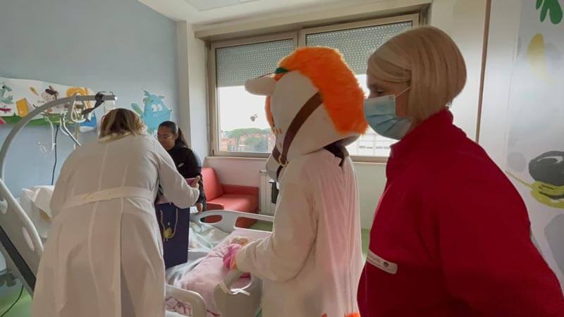 Tony il Pony, l’ormai conosciutissima mascotte dalla criniera “orange” della FISE, in compagnia di alcuni campioni degli sport equestri e di volti istituzionali, venerdì 20 è stato nel reparto di Oncologia Pediatrica del Policlinico Gemelli di Roma per portare i tanti regali che appassionati, praticanti e diversi sponsor della Federazione hanno raccolto con l’unico scopo di offrire un momento di serenità ai piccoli pazienti.