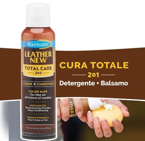 Leather New Total Care è un comodo detergente e balsamo per pelle a base di olio di avocado.