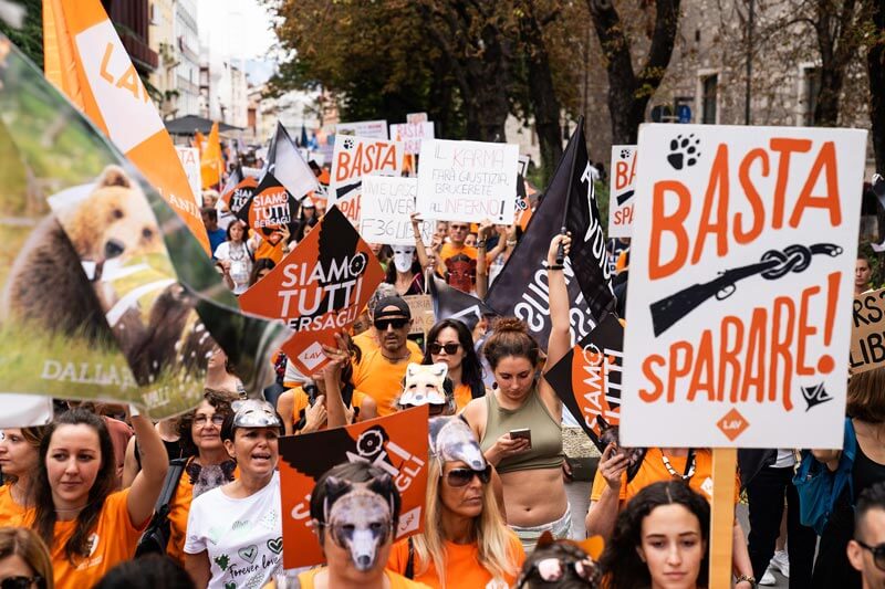 “Una manifestazione pacifica, colorata, partecipata e grintosa per dire NO alla caccia, ai fucili e alla violenza, e per dire SI’ alla vita e alla convivenza pacifica con tutti gli animali, orsi e lupi compresi” dichiara Simone Stefani, vicepresidente nazionale LAV e responsabile della sede di LAV Trentino. “Organizzata da LAV a Trento, questa manifestazione ha un significato particolare, visto che in questo territorio è iniziata da tempo la guerra della giunta Fugatti contro orsi e lupi, fatta di continui decreti di cattura e uccisione”.