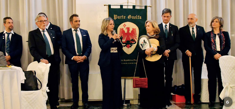 In serata ci aspettavano presso l’Istituto di Scienze Militare dell’Aeronautica per una cena di gala nel Sala da Ballo delle Debuttanti. C’erano più di cento persone presenti. La serata iniziava con una visita guidata all’edificio della scuola militare. Gli edifici risalgono al 1930 opera dell’architetto rinomato Raffaello Fagnoni, nato a Firenze. La scuola aeronautica è la sua opera più nota e venne progettata in quegli edifici a partire dalla fine del 1936. Nel 1937 si iniziava la realizzazione conclusasi nel marzo 1938 nel tempo record di nove mesi. La visita guidata veniva seguita da un ricevimento e una cena. La serata è stata molto piacevole e, verso la fine, si sono tenuti alcuni discorsi ed è stato consegnato un ricordo ai partecipanti e agli Assessori Cecilia del Re, Cosimo Guccione con Mimma Dardano, ai Rappresentante del Comando ISME e della Fondazione Bacciotti.