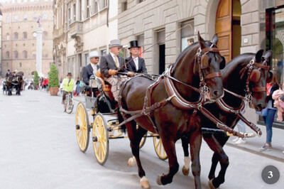 Nel mattina di domenica era prevista e si è svolta la Prova di Maneggevolezza nel Parco delle Cascine. Nel pomeriggio, poi, i guidatori si sono diretti in sfilata in mezzo a una vera folla di persone, sotto scorta della polizia, verso la chiesa Santa Maria Novella nel centro della città. Con una suggestiva sosta davanti a Palazzo Vecchio, si giungeva in Piazza Santa Maria Novella, gli attacchi venivano schierati in fronte al tavolo della Giuria per ascoltare i resultati del concorso e per la Cerimonia di Premiazione. Vincitori delle varie categorie sono stati Paolo Lascialfari con pony singolo e Rally car, Ramona Bigatto con tiro pesante e Break Wagonette francese, Enrico Cerutti con un pregiato Tilbury di inizio 800, Bruno Monero con pariglia cavalli frisoni e una Milord firmata Mülbacher e finalmente Ugo Cei con il suo unicorno e un Phaeton di fattura francese di metà 800. I premi d’onore sono stati consegnati dal Presidente di Parte Guelfa Gabriele Malquori Dopo questa cerimonia tutti gli iscritti al Concorso hanno fatto un giro d’onore nella Piazza dominata dalla bellissima chiesa, una delle più famose di Firenze. Quindi ecco il legame storico ripristinato! Nell’anno 1563 su iniziativa del Granduca Cosimo I, ci fu una prima sfilata con carrozze sulla Piazza di Santa Maria Novella nel giorno dell’onomastico di San Giovanni sotto la denominazione “Palio dei Cocchi”. Il Gruppo Italiano Attacchi, l’Arciconfraternita di Parte Guelfa e il Comune di Firenze oggi possono essere orgogliosi di aver fatto rivivere alla bella città di Firenze una secolare storia e una antica tradizione.