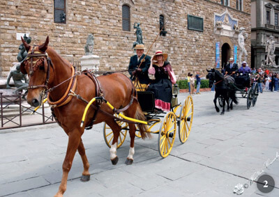 I negoziati si presentavano difficili perché nella città di Firenze ci sono molti, molti eventi e, per questo, il Comune permette di inserirne in calendario di nuovi solo se presentano un collegamento storico ben chiaro. Il nome dell’evento, quindi, si riferisce alla storia di Firenze. “Cocchi” è una vecchia parola tipica di Firenze ed è derivata dal nome ungherese “kocs”, che sta per carrozza. Il Marzocco è il leone araldico che è il simbolo della città. La più famosa statua del leone del Marzocco fu scolpita dallo scultore Donatello nell’anno 1418. Per quanto riguarda gli organizzatori in loco, erano Mirko Belli e Carlo Girivetto, responsabili GIA dell’evento. I cavalli dei 14 partecipanti erano alloggiati nelle stcuderie dell’Ippodromo del Visarno a Firenze. Secondo il programma venerdì 6 maggio avremmo dovuto partire per fare un giro in carrozza attraverso la città fino alle Scuderie dei Medici. Ma è andata male… pioveva questo giorno e i vetturini italiani non guidano i cavalli sotto la pioggia. E curioso ma vero.
