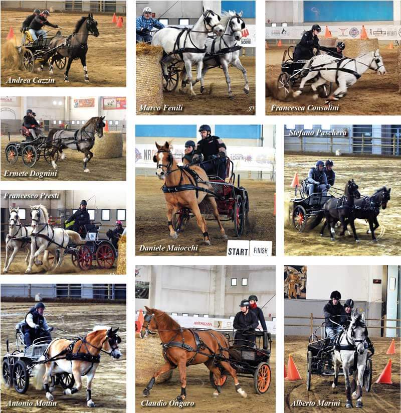 Non è mancata la sana competizione fra i team “rodati” che si presentavano già ben allenati alla prima gara a testimonianza di training regolari nonostante i mesi invernali. Ventuno concorrenti venuti prevalentemente dal Nord/Est in particolare dalle province di Pavia, Lodi, Cremona, Brescia, Bergamo, Varese, nonché da quelle di Trento, Venezia, Verona. Percorso con due ostacoli fissi sapientemente disegnato e costruito da Carlo Girivetto, che ha ricevuto gli applausi di tutti i guidatori. Un percorso con 20 porte, che ha visto impegnate 4 categorie: Singoli e Pariglie Pony e Singoli e Pariglie Cavalli.