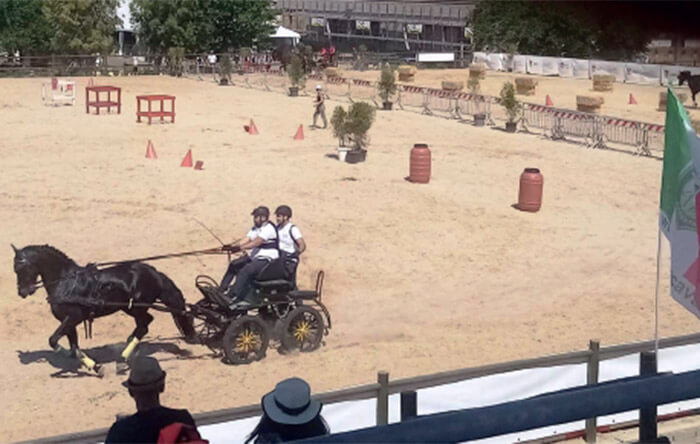 Un mondo variopinto che si muove a ritmo cadenzato, i colori accesi della tradizione isolana che si fondono in un’armonia leggera. Sono i carretti siciliani, i costumi tipici delle donne, carichi di rosso, di verde e (ahimè) di nero, che ci riportano a quella Sicilia rurale e sanguigna, aspra come la siccità, ma ancora più dolce adesso che si carica dei profumi della stagione estiva ormai alle porte. Anche in questa quarta edizione di Fiera del Cavallo Mediterraneo, gli appassionati delle redini lunghe sono stati presenti con le consuete due tappe della Italian Driver Cup, organizzate dalla Associazione Siciliana Attacchi, in combine tra le EPS Engea e Endas, con il patrocinio del Gruppo Italiano Attacchi, una compagine che ormai da diverse edizioni si ripropone ogni anno, migliorando l’evento squisitamente sportivo. Ed è stato un grande successo, superiore alle passate esperienze, poiché questo è stato l’anno della grande affluenza di pubblico che, richiamato dal clima di maggio non ha voluto mancare un appuntamento così importante. Tifo da stadio sulle tribune, con lo speaker che (anche lui coinvolto emotivamente nella gara) incitava i concorrenti; e… polvere, tanta polvere sollevata dalle carrozze a testimoniare la fatica degli equipaggi, che ha emozionato tutti. Per tre giorni è stata una festa distribuita sulle diverse arene, con spettacoli anche internazionali, performance sportive, convegni zootecnici ed allevatoriali imperniati sull’elemento primo che qui si manifesta in ogni dove: il cavallo.