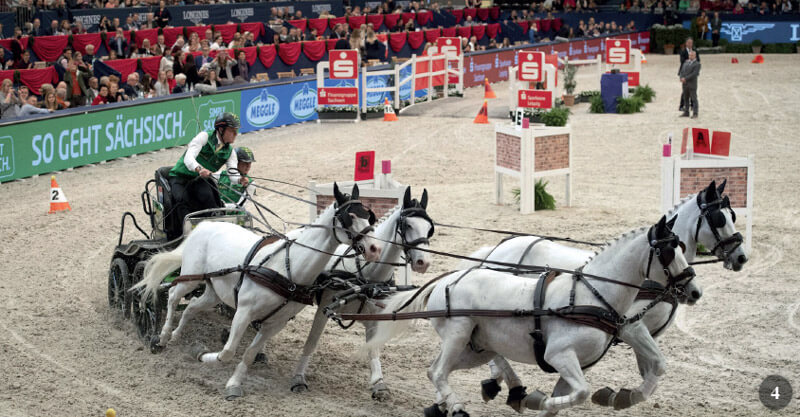 Le gare di Tiro a quattro Indoor sono tra le competizioni più esaltanti. Per la FEI World Cup Driving ™ i concorrenti si qualificano per la Finale accumulando punti per tutta la stagione. Quest’anno, nella Finale a Lipsia in Aprile, quattro paesi, Olanda, Australia, Belgio, Germania, erano rappresentati dai sette Team partecipanti.