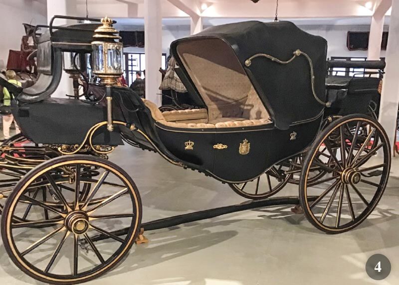 - Half Gala Calèche del Granduca von Oldenburg costruita intorno al 1850-60 dal carrozziere Lechner di Vienna. Il sedile del conducente può essere rimosso in modo che la vettura possa anche essere guidata à la d’Aumont. E’ stata acquistata in ottime condizioni dal castello di Oldenburg nello Schleswig- Holstein.