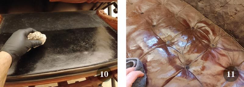 - Fase di applicazione della crema rigenerante per pelli e cuoi